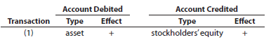 Indicate for each debit and each credit: (a) whether an asset, liability, stockholdersâ equity, dividend, revenue, or expense account was affected and (b) whether the account was increased (+) or decreased (â). Present your answers in the following form, with transaction (1) given as an example: