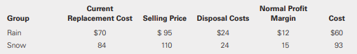 > Count Clothing Company manufactures two types of raincoats—Regular and Stain Resistant. Information related to both products is presented in the following table. Determine the ending inventory value per unit and the amount of any write