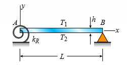 Beam AB has an elastic support kR at A, pin support at B, length L, height h (see figure), and is heated in such a manner that the temperature difference T2 â T1 between the bottom and top of the beam is proportional to the distance from support A. Assume the temperature difference varies linearly along the beam: