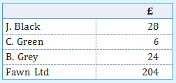 No further business transactions were entered into with any of these credit customers during the year ended 30 June 20X9, but an amount of £9 was received from J. Blackâs trustee in bankruptcy by way of a first dividend; a first and final dividend of £70 was received from the liquidator of Fawn Ltd and B. Grey paid his debt in full. A further debt of £95 due from S. White proved to be irrecoverable.