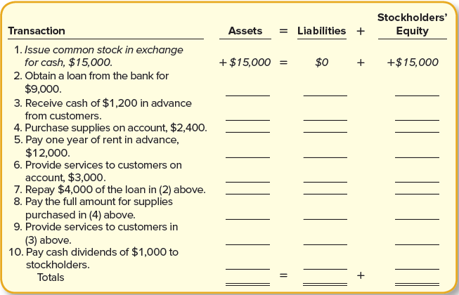 > Account classifications include assets, liabilities, stockholders’ equity, dividends, revenues, and expenses. Required: For each transaction, indicate whether the related account would be classified in the balance sheet as (a) an asset,