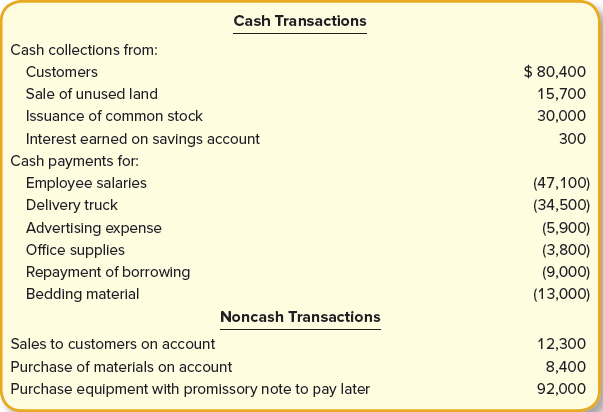 Prepare a statement of cash flows for the month of August, properly classifying each of the transactions into operating, investing, and financing activities. The cash balance at the beginning of August is $8,300.