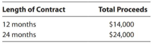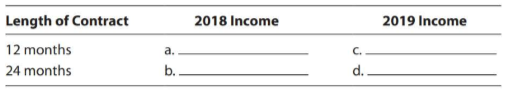 Length of Contract Total Proceeds 12 months $14,000 24 months $24,000 Length of Contract 2018 Income 2019 Income 12 months a. C. 24 months b. d.