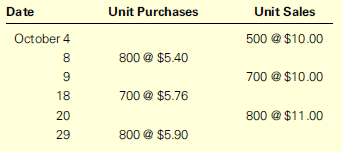 Bitten Companyâs inventory records show 600 units on hand on October 1 with a unit cost of $5 each. The following transactions occurred during the month of October: