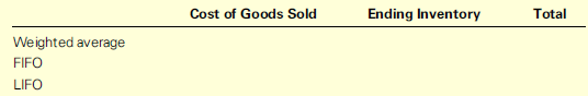 1. Prepare a chart comparing cost of goods sold and ending inventory using the periodic system and the following costing methods:
