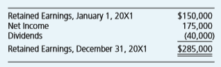 Retained Earnings, January 1, 20X1 Net Income $150,000 175,000 (40,000) Dividends Retained Earnings, December 31, 20X1 $285,000