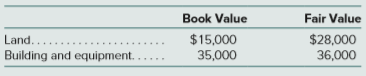 Book value Fair Value Land....... Building and equipment. $15,000 35,000 $28,000 36,000 ....