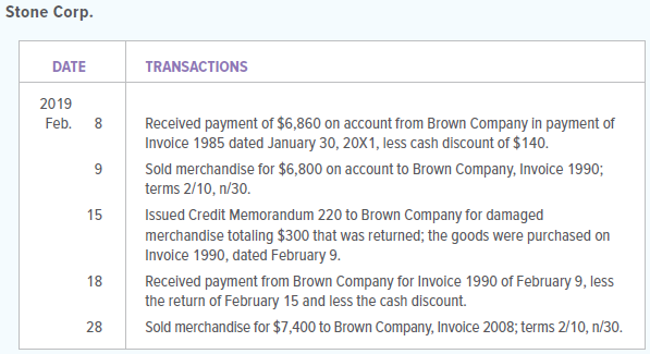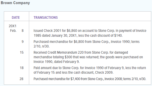 Brown Company (buyer) and Stone Corp. (seller) engaged in the following transactions during February 20X1: