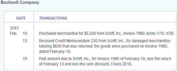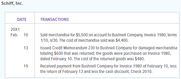 Bushnell Company (buyer) and Schiff, Inc. (seller), engaged in the following transactions during February 20X1:
