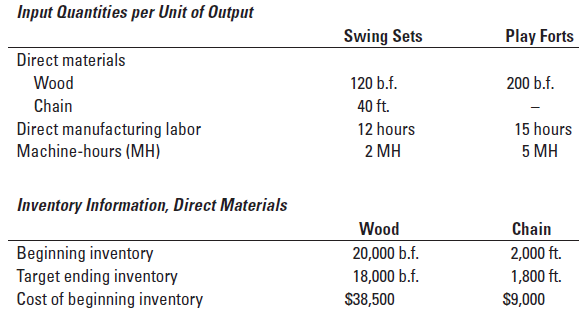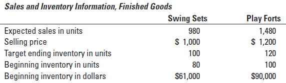 Butler, Inc., operates at capacity and makes wooden playground equipment. Although Butlerâs swing sets and play forts are a matching set, they are sold individually and so the sales mix is not 1:1. Butlerâs management is planning its annual budget for fiscal year 2021. Here is information for 2021: