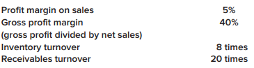Cadux Candy Companyâs income statement for the year ended December 31, 2021, reported interest expense of $2 million and income tax expense of $12 million. Current assets listed in its balance sheet include cash, accounts receivable, and inventory. Property, plant, and equipment is the companyâs only noncurrent asset. Financial ratios for 2021 are listed below. Profitability and turnover ratios with balance sheet items in the denominator were calculated using year-end balances rather than averages.