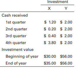 > You are considering two investment alternatives. The first is a stock that pays quarterly dividends of $0.25 per share and is trading at $20 per share; you expect to sell the stock in six months for $24. The second is a stock that pays quarterly dividend