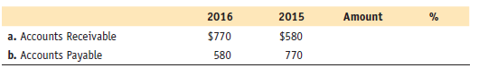 2016 2015 Amount % a. Accounts Receivable $770 $580 b. Accounts Payable 580 770
