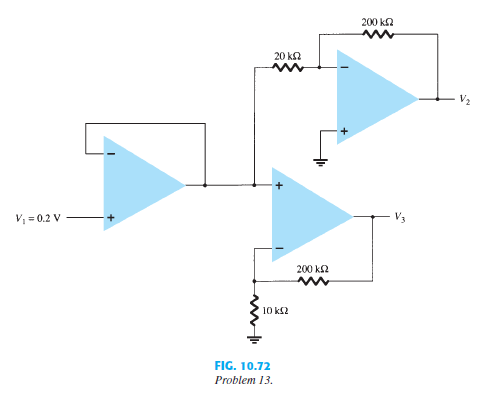 > Using the specifications listed in Table 10.3; calculate the typical offset voltage for the circuit connection of Fig. 10.75.