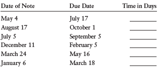 Date of Note Due Date Time in Days May 4 August 17 July 5 December 11 July 17 October 1 September 5 February 5 May 16 March 24 January 6 March 18