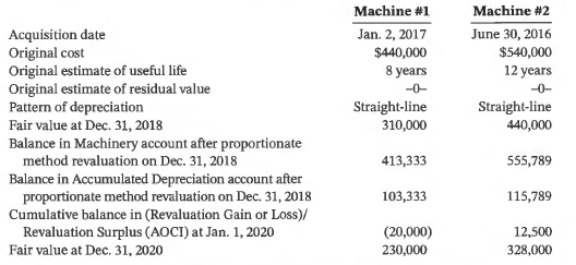 Cameo Manufacturers Inc., a publicly listed company, has two machines that are accounted for under the revaluation model. Technology in Cameo's industry is fast-changing, causing the fair value of each machine to change significantly about every two years. The following information is available: