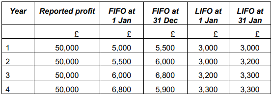 Calculate the profit that would have been reported for each of years 1 to 4 if LIFO stock valuation had been used throughout the period.