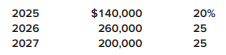 Case Development began operations in December 2024. When property is sold on an installment basis, Case recognizes installment income for financial reporting purposes in the year of the sale. For tax purposes, installment income is reported by the installment method. 2024 installment income was $600,000 and will be collected over the next three years. Scheduled collections and enacted tax rates for 2025â2027 are as follows: