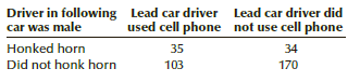Driver in following Lead car driver Lead car driver did car was male used cell phone not use cell phone Honked horn 35 34 Did not honk horn 103 170