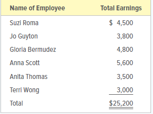 1. Compute the state unemployment insurance tax owed on the employeesâ wages for the quarter ended March 31, 20X1. This information will be shown on the employerâs quarterly report to the state agency that collects SUTA tax. The employer has recorded the tax on each payroll date. Although the state charges a 5.4 percent unemployment tax rate, Robinâs Nest LLCâs rate is only 1.7 percent because of its experience rating. The employee earnings for the first quarter are shown below. All earnings are subject to SUTA tax.