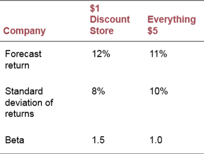 > Here are data on two companies. The T-bill rate is 4% and the market risk premium is 6% What should be the expected rate of return for each company, according to the capital asset pricing model (CAPM)?