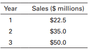 Chris is currently working with a respected Beverly Hills broker and is in the process of building up a diversified portfolio of speculative stocks. The broker recently sent him information on a hot new issue. She advised Chris to study the numbers and, if he likes them, to buy as many as 1,000 shares of the stock. Among other things, corporate sales for the next three years have been forecasted as follows: