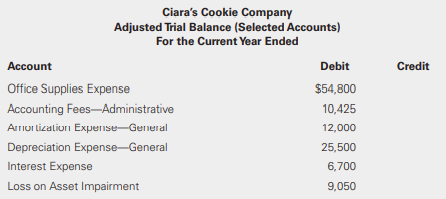 Ciaraâs Cookie Company provided the following accounts from its year end trial balance.
