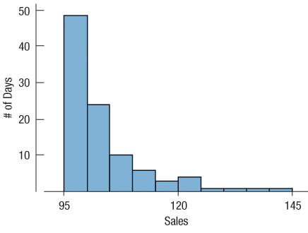 2. Which should be larger, the mean number of sales or the median? Explain.