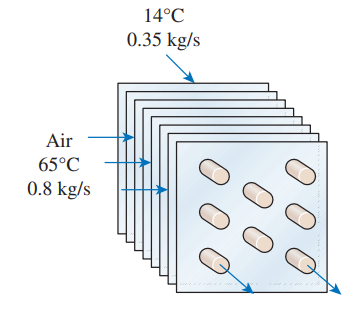 K) enters a crossflow heat exchanger at 14°C at a rate of 0.35 kg/s where it is heated by hot air (cp = 1.0 kJ/kgâ