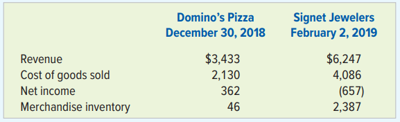 b. Calculate the inventory turnover ratios for Dominoâs and Signet.