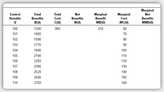 > Suppose the total benefit derived from a continuous decision, Q, is B(Q) = 20Q − 2Q2 and the corresponding total cost is C(Q) = 4 + 2Q2, so that MB(Q) = 20 − 4Q and MC(Q) = 4Q. a. What is total benefit when Q = 2? Q = 10? b. What is marginal benefit when