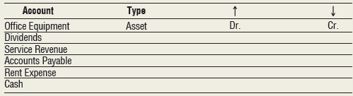 Complete the following table. For each account listed, identify the type of account, how the account is increased (debit or credit), and how the account is decreased (debit or credit). Use the most detailed account type appropriate.