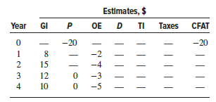 > An asset with a first cost of $9000 is depreciated using 5-year MACRS recovery. The CFBT is estimated at $10,000 for the first 4 years and $5000 thereafter as long as the asset is retained. The effective tax rate is 40%, and money is worth 10% per year.