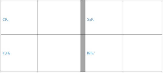 > a. Draw the Lewis structures for these species. If more than one Lewis structure is possible, draw the structure with the formal charges minimized. Show all valence electrons in your structures. XeO2 XeF. PFs IFs 大 (b) Based on your structures f