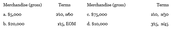 Compute the amount to be paid for each of the four separate invoices assuming that all invoices are paid within the discount period.
