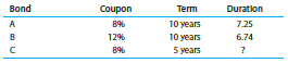 Bond Coupon Тem Duration A 8% 10 years 7.25 B 12% 10 years 6.74 5 years
