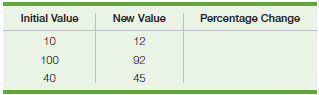 Initial Value New Value Percentage Change 10 12 100 92 40 45