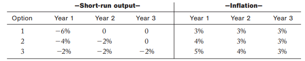 -Short-run output- -Inflation- Option Year 1 Year 2 Year 3 Year 1 Year 2 Year 3 1 -6% 3% 3% 3% - 2% - 2% -4% 4% 3% 3% 3 -2% - 2% 5% 4% 3%