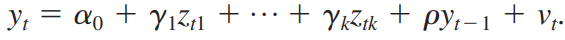 > An interesting economic model that leads to an econometric model with a lagged dependent variable relates yt to the expected value of xt, say, x*t , where the expectation is based on all observed information at time t - 1: yt = 0 + 1x*t + ut. A natural