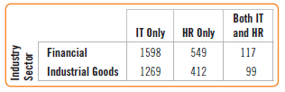 Both IT IT Only HR Only and HR Financial 1598 549 117 Industrial Goods 1269 412 99 Industry Sector
