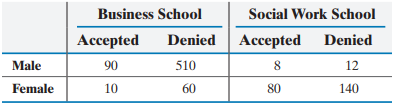 A lurking variable is the type of school applied to. This particular college has two programs of study: business and social work. The following table shows applications by type of school.