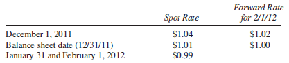 Forward Rate Spot Rae for 2/1/12 December 1, 2011 Balance sheet date (12/31/11) January 31 and February 1, 2012 $1.04 $1.02 $1.01 $0.99 $1.00