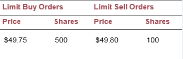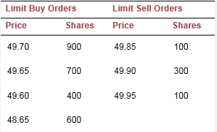 Consider the following limit order book for Fin Trade stock. The last trade in the stock occurred at a price of $50