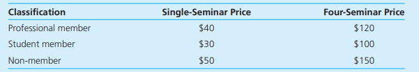 Classification Single-Seminar Price Four-Seminar Price Professional member $40 $120 Student member $30 $100 Non-member $50 $150