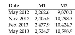 Consider the following table with data about monetary aggregates (billions of dollars, seasonally adjusted data):