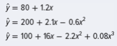ŷ = 80 + 1.2x ŷ = 200 + 2.1x – 0.6x? ŷ = 100 + 16x – 2.2x² + 0.08x³