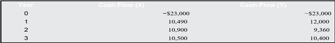 > Bruin, Inc., has identified the following two mutually exclusive projects:b. If the required return is 11 percent, what is the NPV for each of these projects? Which project will the company choose if it applies the NPV decision rule?c. Over what range of