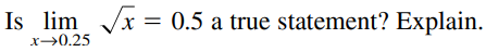 > Determine whether the statement is true or false. If it is false, explain why or give an example that shows it is false. If f is undefined at x = c, then the limit of f(x) as x approaches c does not exist.