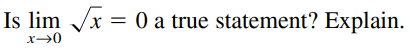 > Determine whether the statement is true or false. If it is false, explain why or give an example that shows it is false. If f is undefined at x = c, then the limit of f(x) as x approaches c does not exist.