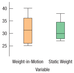 Consider the weights from Exercise 4. The side-by-side boxplots below show little difference between the two groups. Should this be sufficient to draw a conclusion about the accuracy of the weigh-in-motion scale?